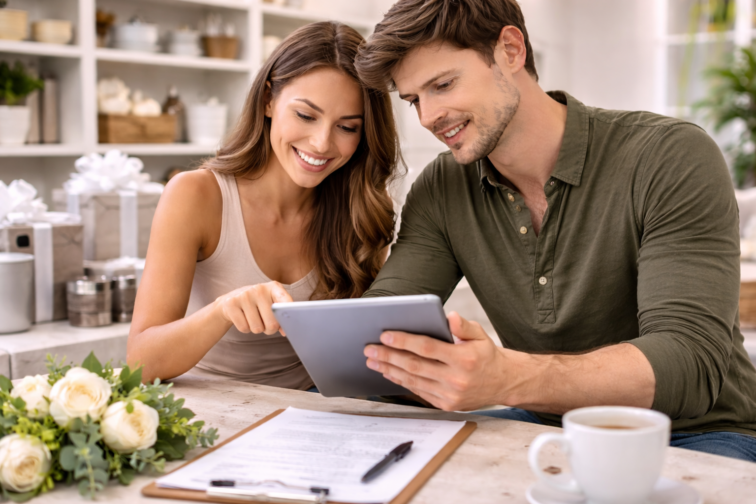 In this scenario, you're registering for wedding gifts, an exciting part of the wedding planning process. You and your partner are creating a list of gifts you'd love to receive, from household essentials to special items for your home. This list helps guide your guests on what to give, making sure you get what you need and love. It's a fun and practical way to prepare for your life together after the big day.